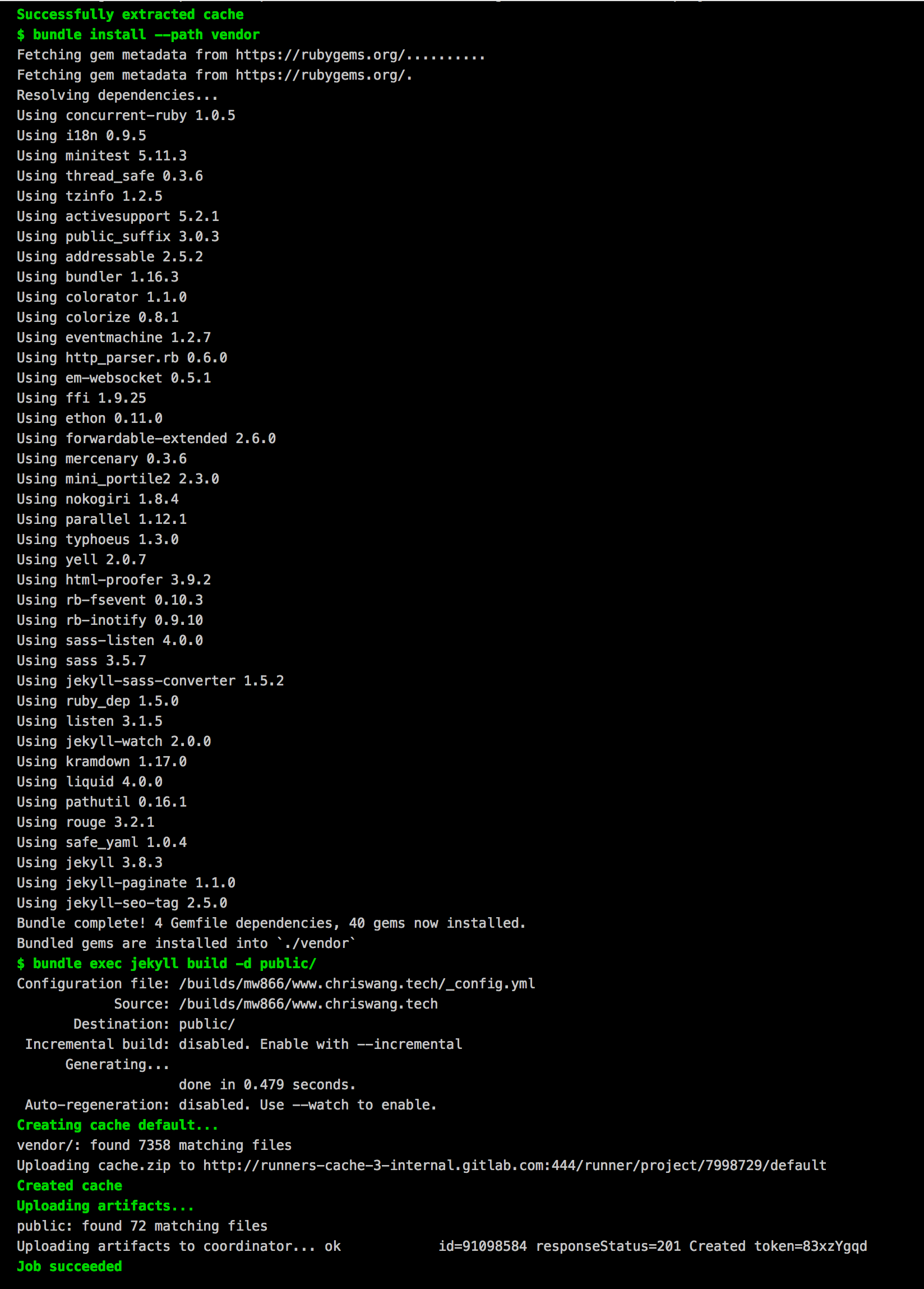 - bundle exec jekyll build -d public/